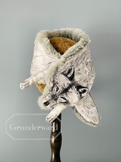 この季節は暗い色の服が多くなる季節なので、シルバーグレーのこの襟巻きで