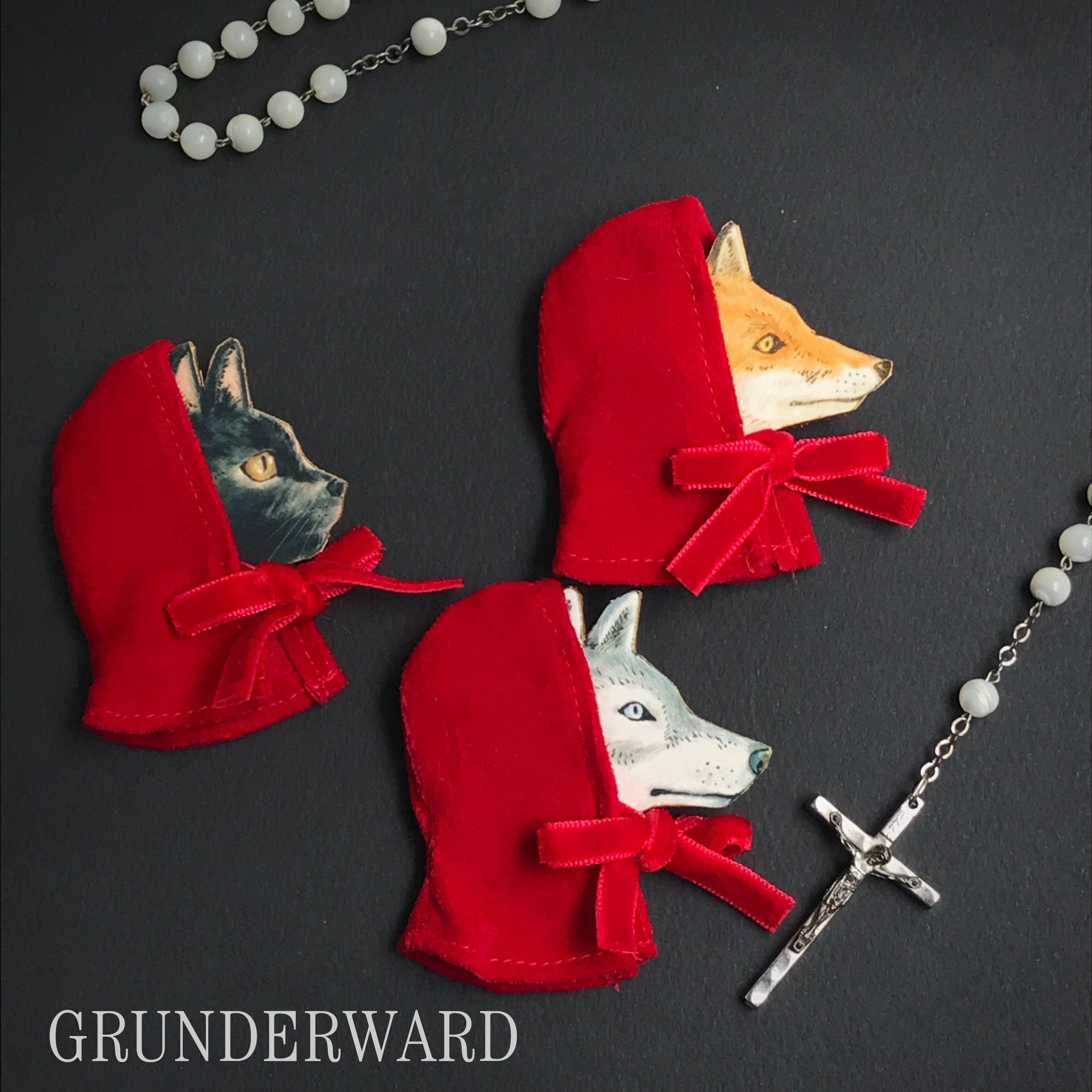 赤ずきんを被った狐のブローチです。