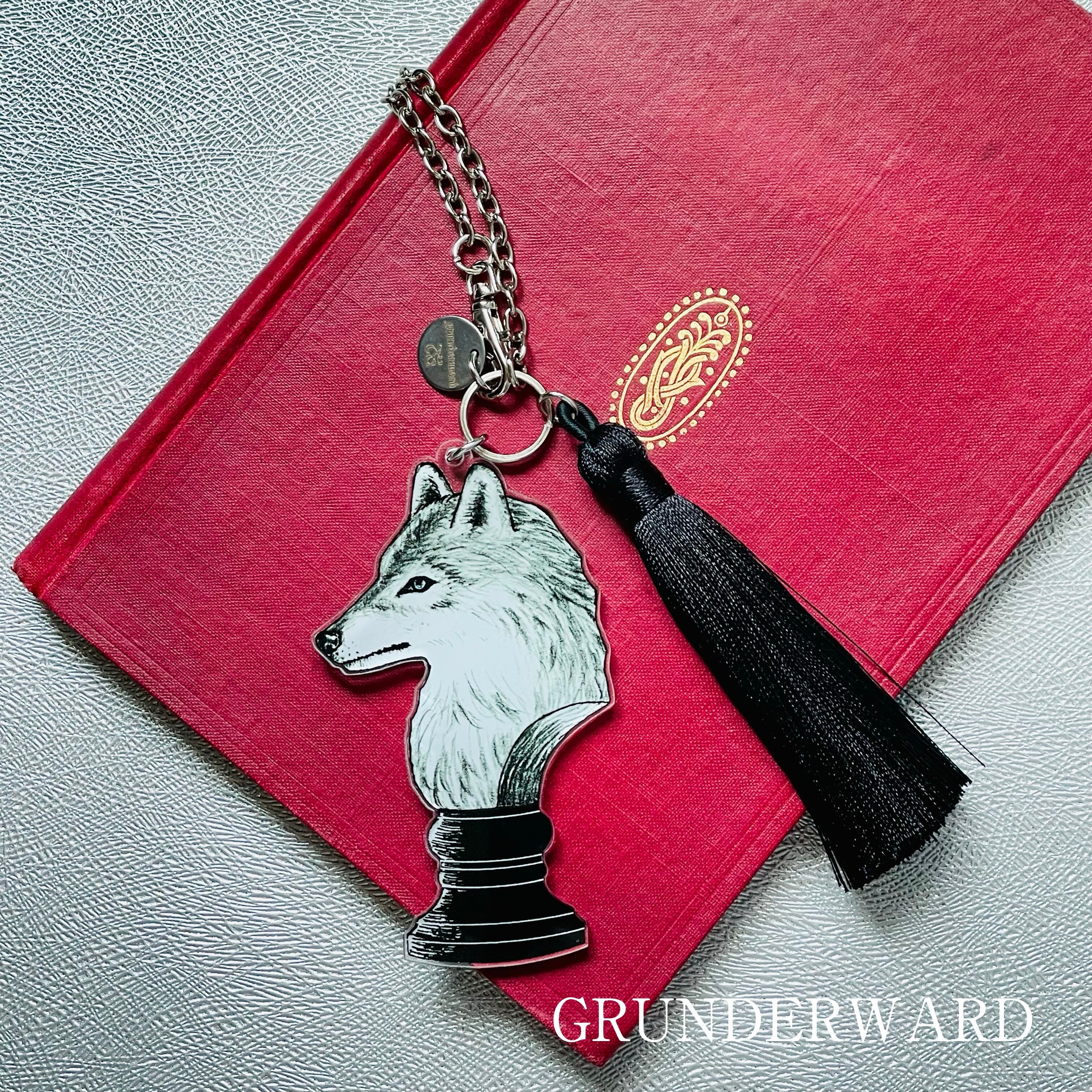 チェスの騎士(ナイト)駒を模した狼のバッグチャーム。