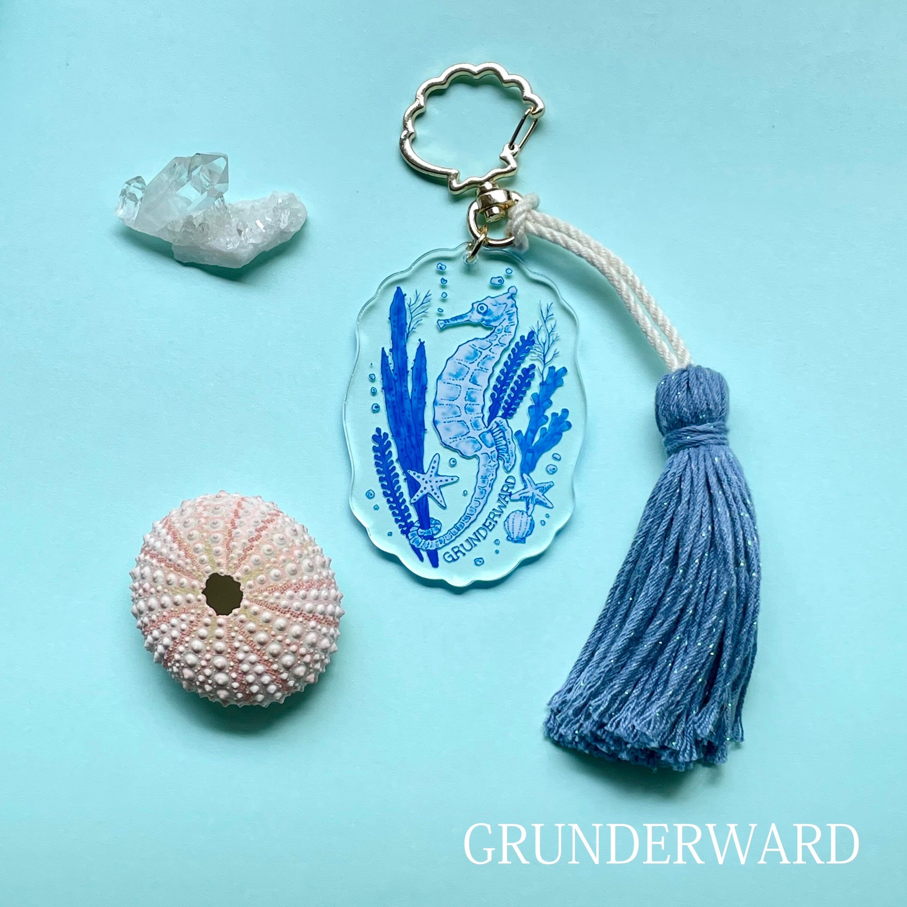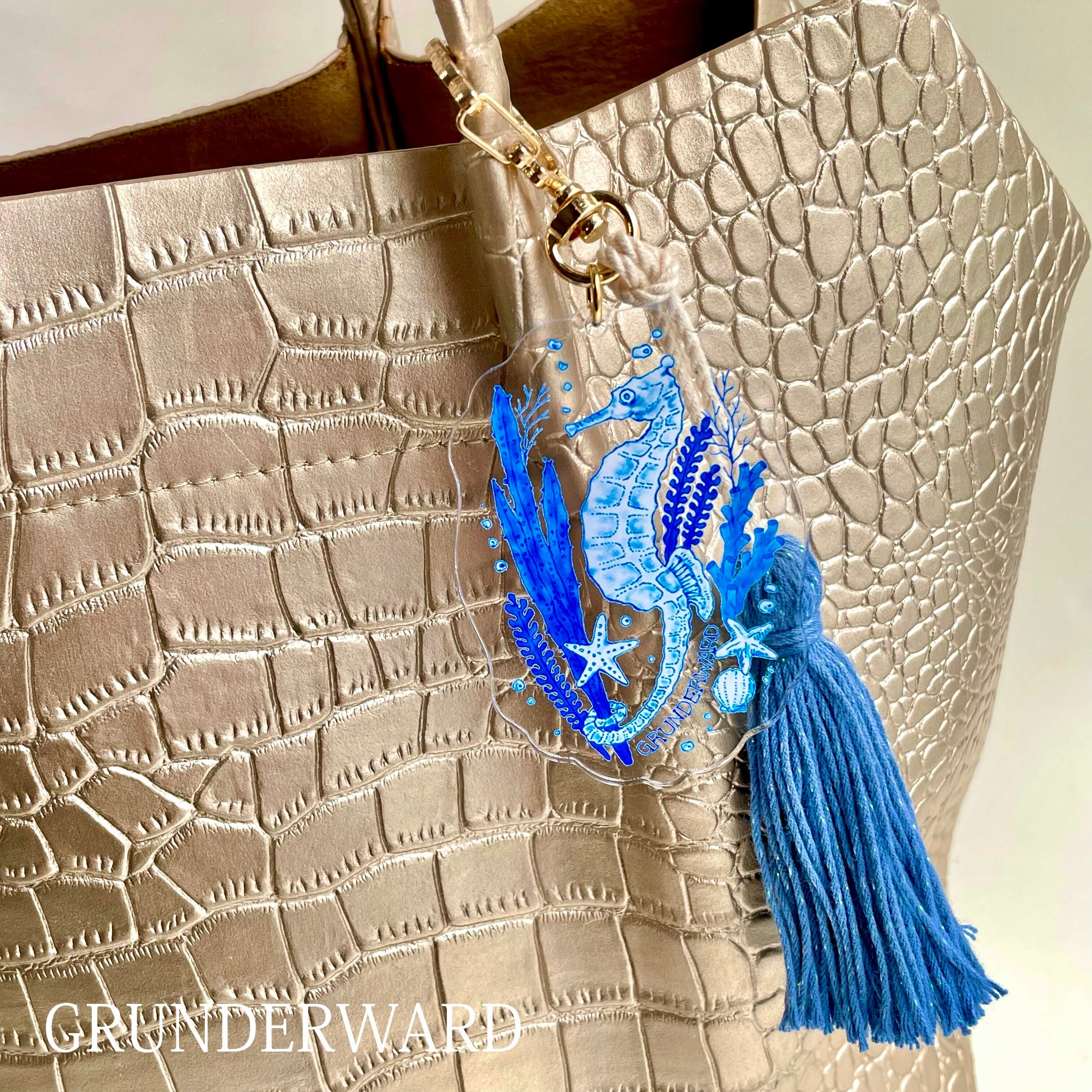 透明感あるブルーが爽やかなタツノオトシゴのバッグチャーム。