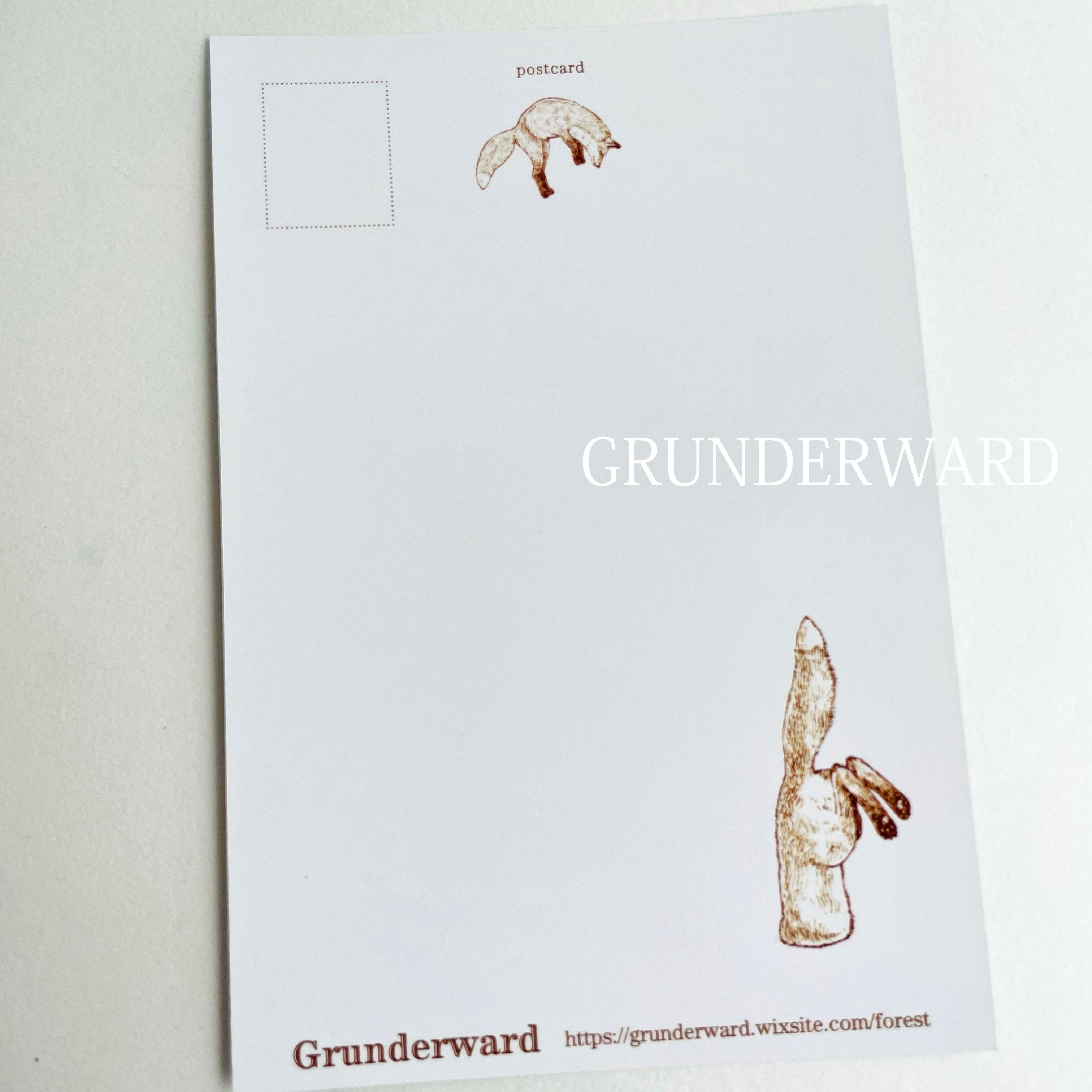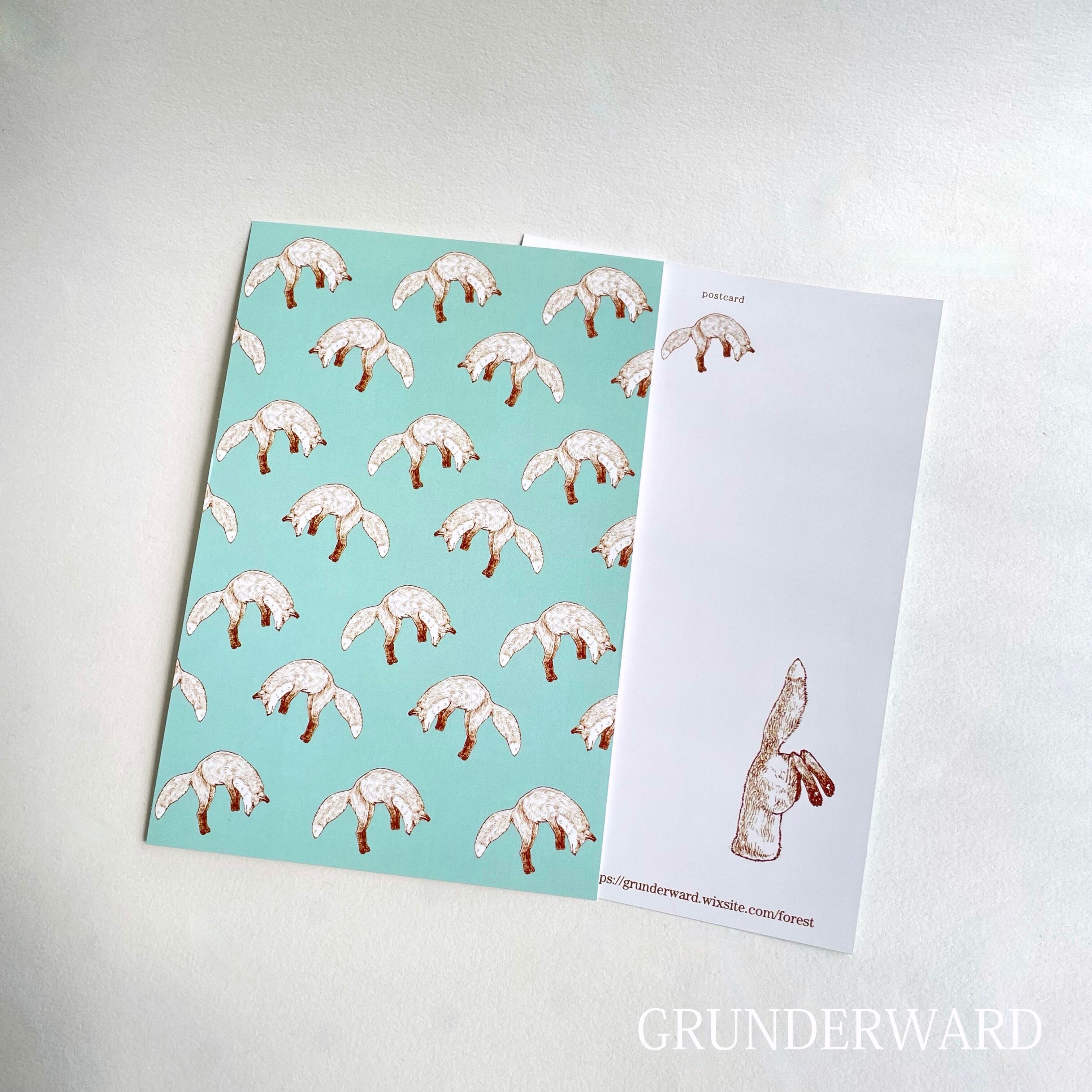裏面はジャンプ後の雪に刺さったキツネがいます。