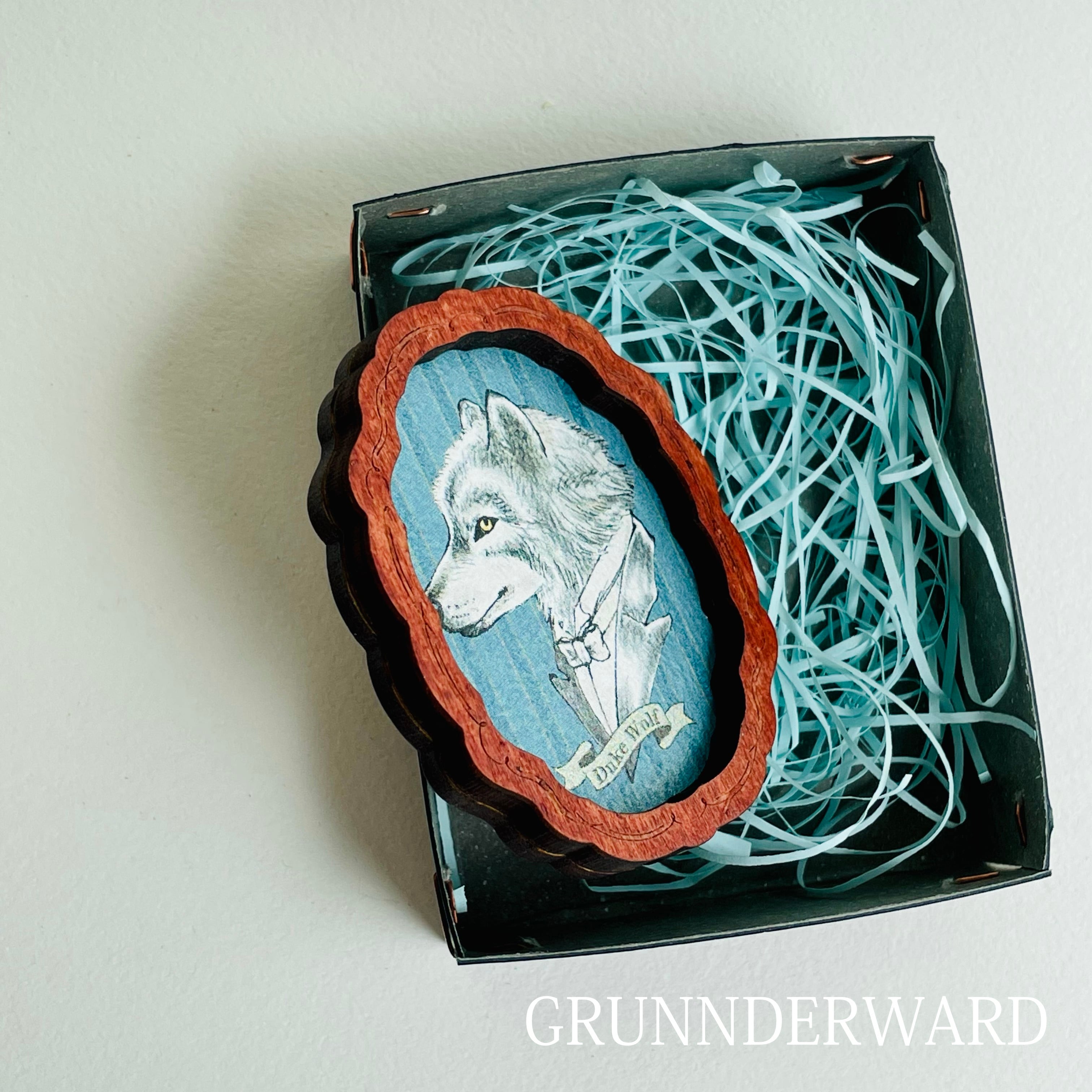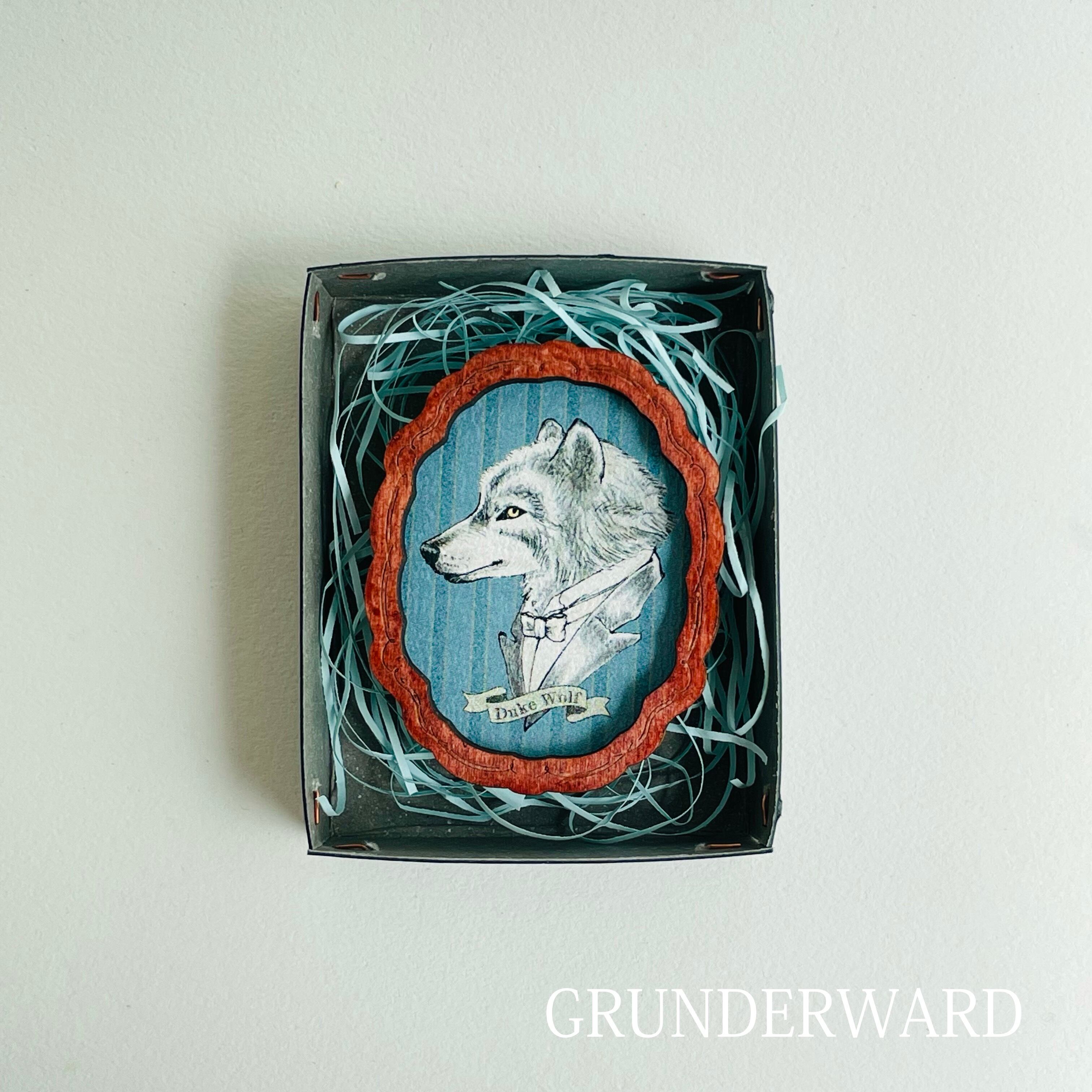 少し大きめの存在感のある額縁にタキシード姿のオオカミ公爵を入れました。