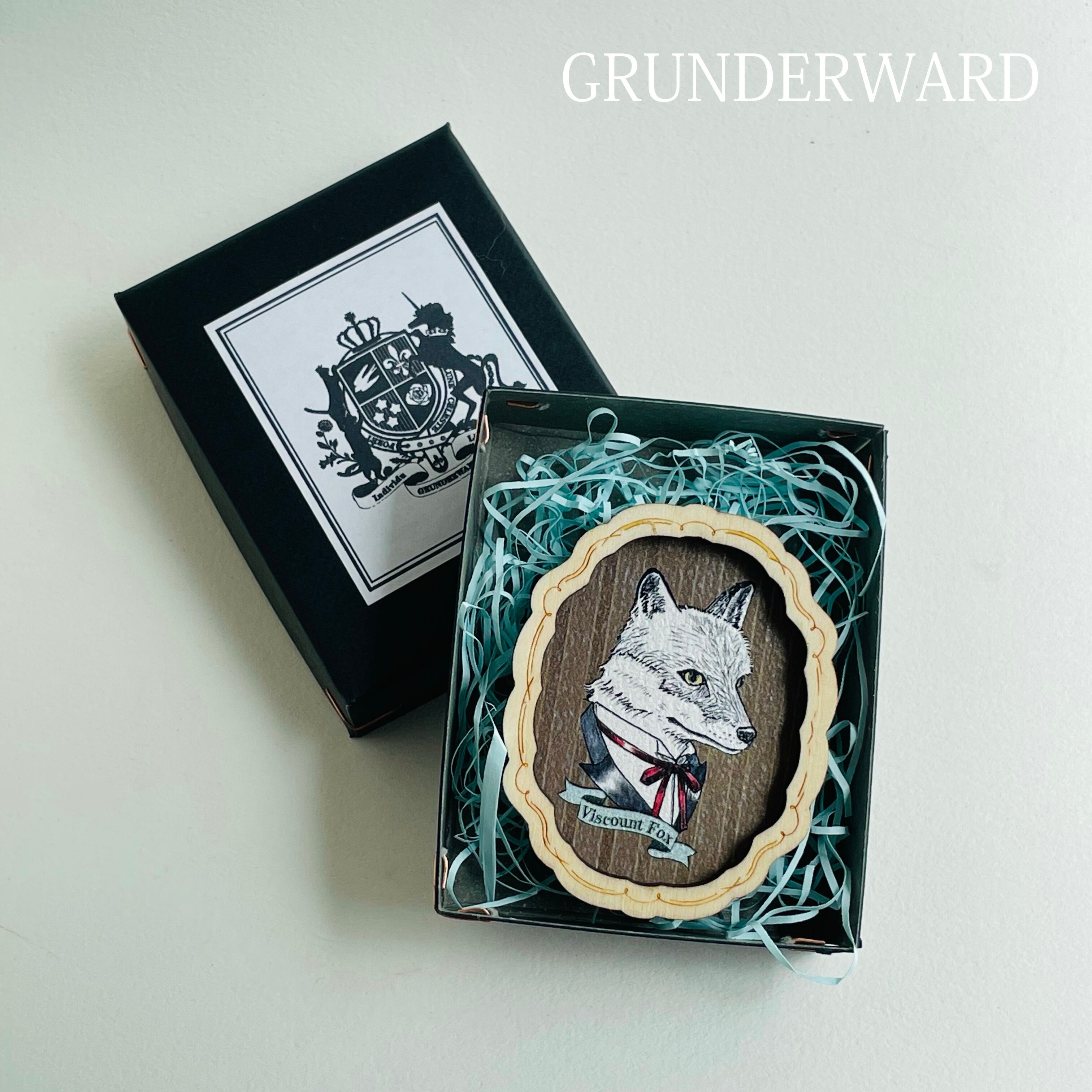 少し大きめの存在感のある額縁にリボンタイ姿のキツネ子爵を入れました。