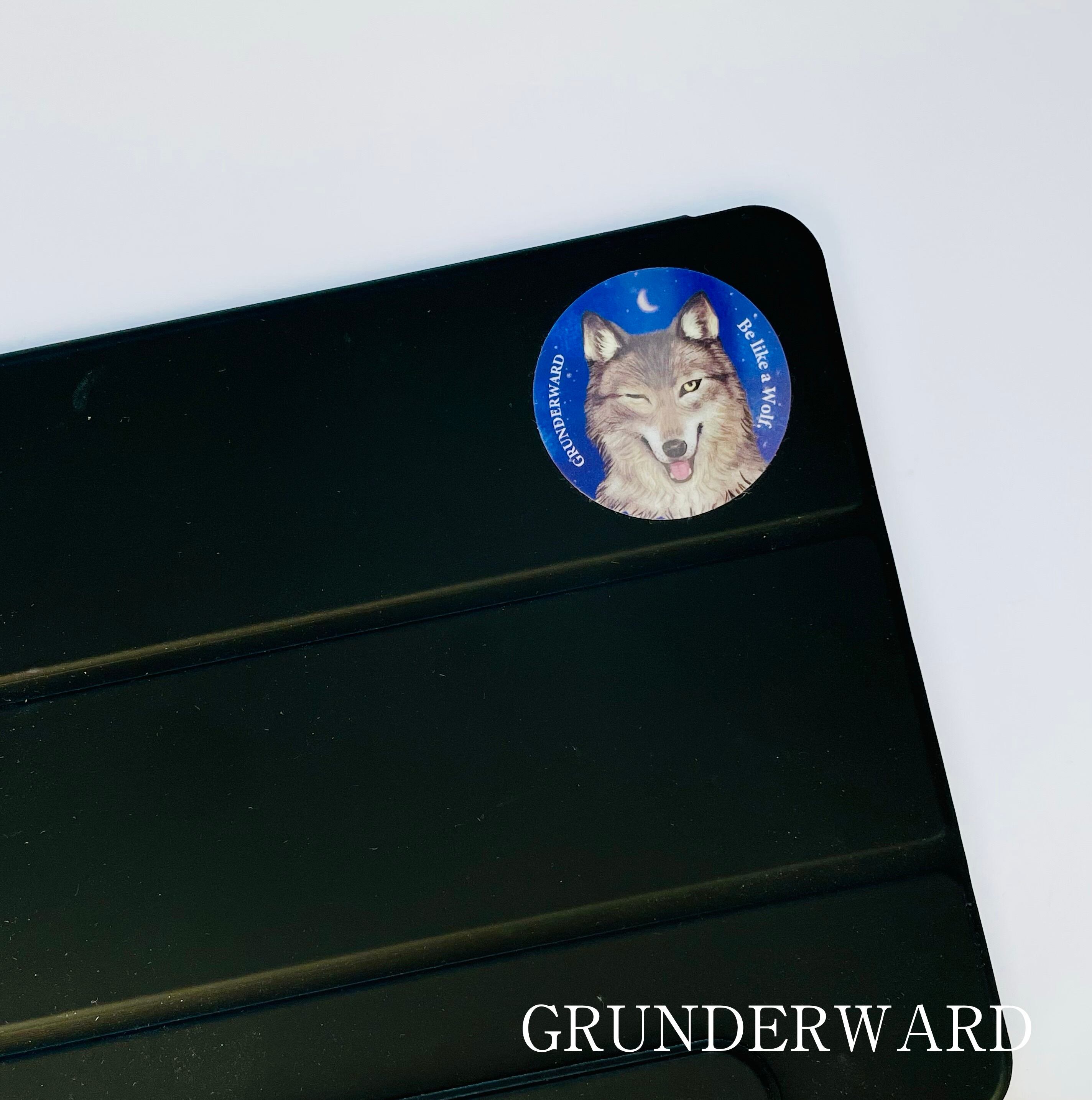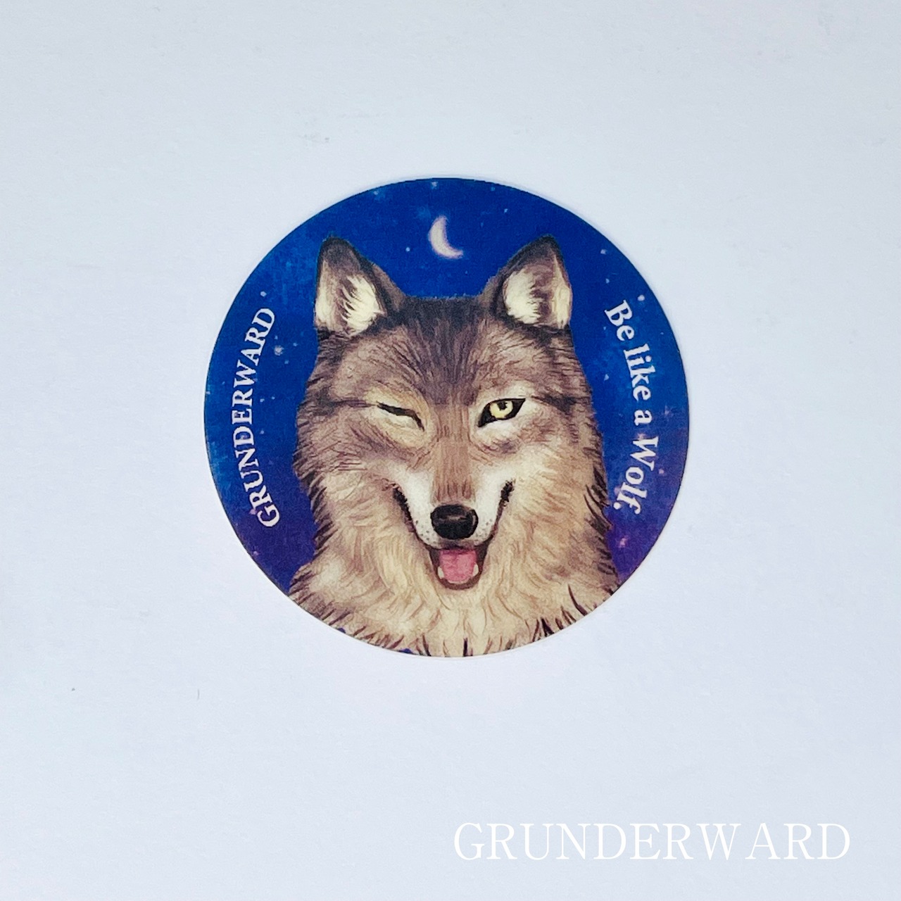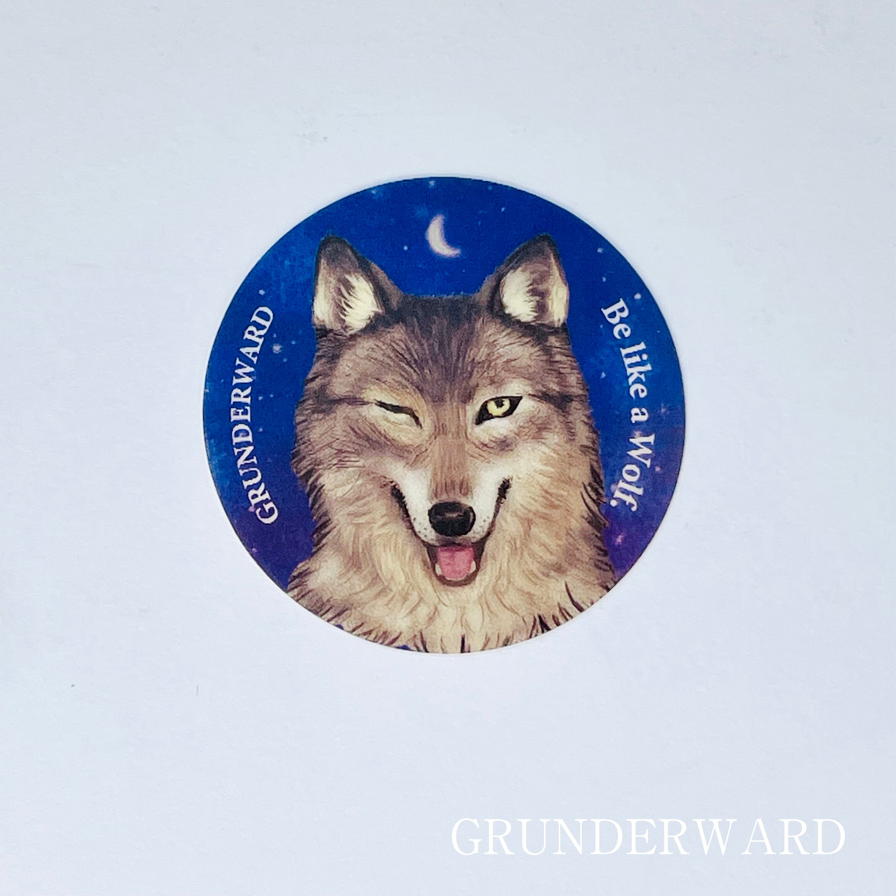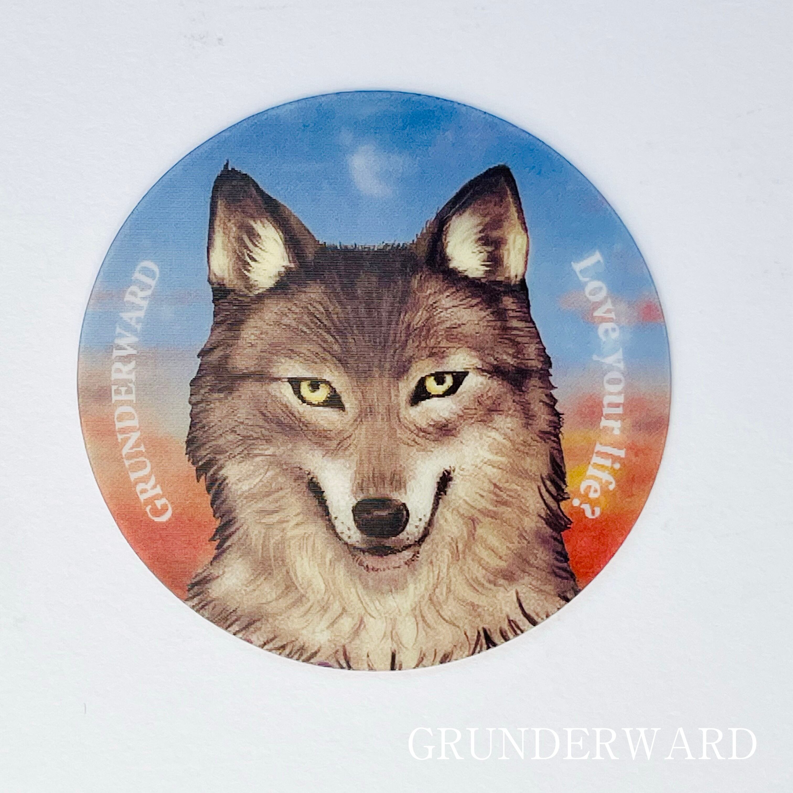 夕焼け空で佇むオオカミと夜空をバックにウィンクするオオカミの変化を楽しめます。